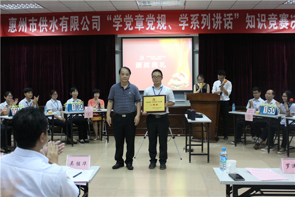 此前,17支參賽隊以筆試形式參加了“學(xué)黨章黨規(guī),學(xué)系列講話”知識競賽初賽,最終遴選出行政三黨支部、營業(yè)分公司和潼湖水廠等8支黨支部代表隊參與決賽。
