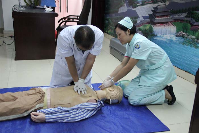 本次講座主要針對常見創(chuàng)傷、突發(fā)疾病急救措施等進行講解。鐘護士長從病因原理、預(yù)防措施、急救方法對急性心肌梗死預(yù)防及急救措施進行了詳細講解,并講授溺水的施救原則和救人方法。隨后,唐主任深入淺出地為大家講解心肺復(fù)蘇的適應(yīng)癥、原則及操作過程等,采取講解和實操演示相結(jié)合的方式,現(xiàn)場為大家演示心肺復(fù)蘇操作。講座內(nèi)容生動、實操演練認真,讓現(xiàn)場人員很快掌握了心肺復(fù)蘇的操作要領(lǐng)。隨后在模擬人實操練習(xí)中,大家踴躍參與現(xiàn)場演練,親身體驗救人分秒必爭的醫(yī)療操作。