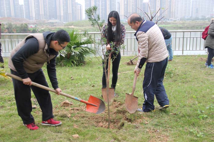 3月12日早晨,細(xì)雨蒙蒙,但各位團(tuán)員青年依舊熱情高漲,興致勃勃。在植樹現(xiàn)場,大家分工明確:有的扶苗,有的培土,各個環(huán)節(jié)銜接有序,配合默契,真正是勁往一處使、汗往一處流,充分發(fā)揚了團(tuán)結(jié)、互助、友愛的精神。經(jīng)過2個小時的揮汗,栽種了包括羅漢松、桑樹、桃樹在內(nèi)的樹苗共10余棵,圓滿完成了此次活動,同時也為環(huán)境保護(hù),美化集團(tuán)辦公環(huán)境貢獻(xiàn)了團(tuán)員青年的一份力量。(集團(tuán)機(jī)關(guān)團(tuán)支部)
