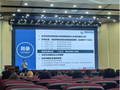 遠(yuǎn)卓咨詢(xún)集團(tuán)王永進(jìn)博士,講授《惠州水務(wù)集團(tuán)十五五戰(zhàn)略規(guī)劃培訓(xùn)》,系統(tǒng)研判了“十五五”期間發(fā)展環(huán)境、經(jīng)濟(jì)社會(huì)發(fā)展趨勢(shì)和發(fā)展思路,展望集團(tuán)發(fā)展新質(zhì)生產(chǎn)力和完善中國(guó)特色現(xiàn)代企業(yè)制度的主要關(guān)注點(diǎn),為集團(tuán)科學(xué)謀劃“十五五”發(fā)展、后續(xù)優(yōu)化戰(zhàn)略路徑、高質(zhì)量發(fā)展提供了積極有效的指導(dǎo)。集團(tuán)總部中層正職以上人員,二級(jí)企業(yè)高管以上人員,三級(jí)企業(yè)領(lǐng)導(dǎo)班子成員,以及參與謀劃“十五五”規(guī)劃編制人員,共約200人參加。