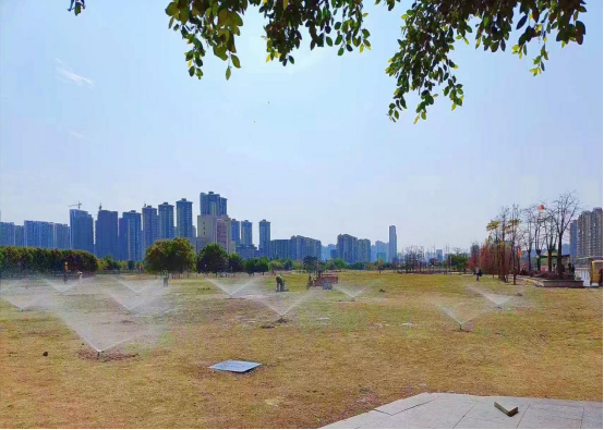 在高效推進(jìn)綠化管護(hù)的同時,管護(hù)項(xiàng)目持續(xù)優(yōu)化人機(jī)配合作業(yè)。一方面,機(jī)械打草替代傳統(tǒng)人工作業(yè),每日減少4人次投入,作業(yè)效率提升近30%;另一方面,配合智能噴淋系統(tǒng),精準(zhǔn)灌溉抑塵,避免積水爛根,同時控制濕度、杜絕蚊蟲孳生溫床,實(shí)現(xiàn)護(hù)綠與防蚊“一舉兩得”。