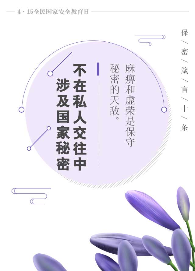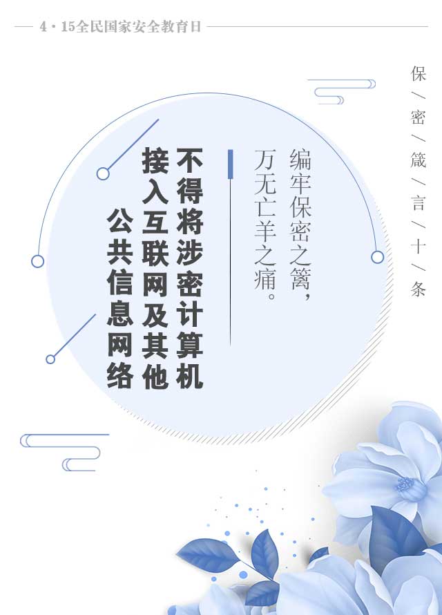 4個全民國家安全教育日。國家利益高于一切,國家安全人人有責(zé),希望大家將警鐘長鳴耳邊,將保密牢記心間,現(xiàn)推出十條“保密箴言”。
