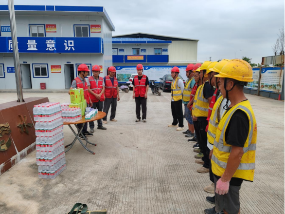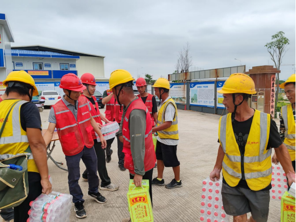 為切實(shí)做好防暑降溫工作,保障一線建設(shè)者的健康安全,5月28日上午,由市水電公司承建的宏達(dá)路(惠大高速至一號(hào)公路段)工程(一期)臨時(shí)黨支部聯(lián)合項(xiàng)目部,在施工現(xiàn)場開展“夏日送清涼”慰問活動(dòng),為奮戰(zhàn)在高溫下的工人們送去黨組織的關(guān)懷與夏日的清涼。